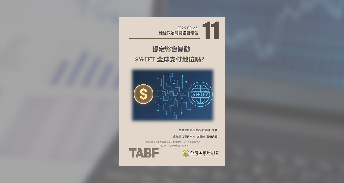 台灣金融研訓院近年持續擴充金融研究發展,打造金融政策智庫平台,觀察國際重要研究趨勢及國際政策及市場環境,不斷拓展研究及強化研發能量,透過金融專業領域及政策研究,融合金融理論及實務,提供主管機關及業界人士更具前瞻性之金融趨勢與政策分析。